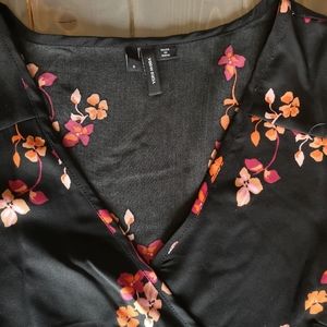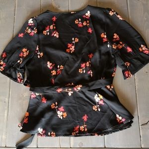 Wrap blouse with cute sleeve and slight peplum bottom.