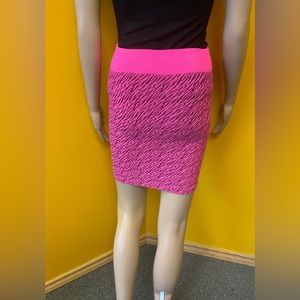 Hot pink and black Zebra print skirt  92% Nylon, 8% Spandex One Size 21” Waist, 15.5 Length