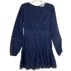 Veronica Beard Addilyn Dress Long Sleeve Navy Ink Blue Eyelet Lace Women's 4