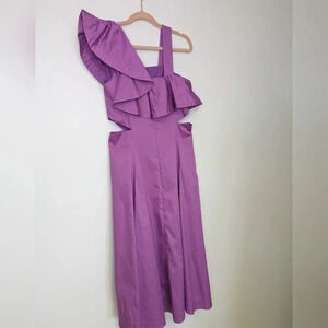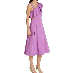 Veronica Beard Beilla One Shoulder Ruffle Cutout Maxi Dress in Vivid Orchid Sz 2