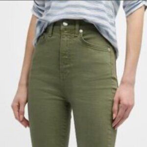 Veronica Beard Carly High Rise Kick Flare Jeans Raw Edge Pants Hi Waist Olive 28