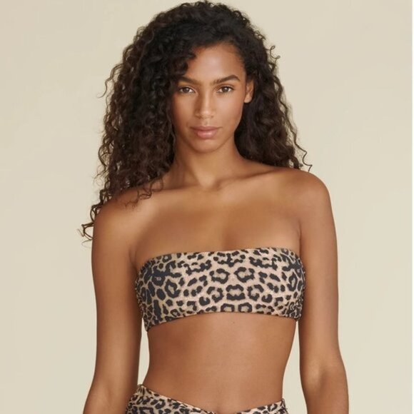 Veronica Beard Catarina Bandeau Bikini Top In Leopard