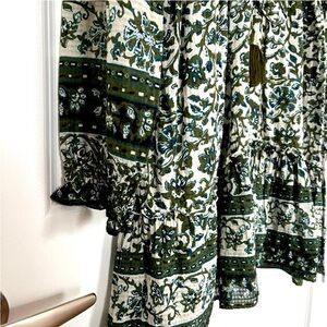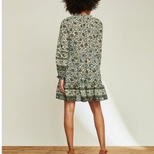Veronica Beard "Danica" floral ruffle detailed mini dress with a cinched waist and tassel ties