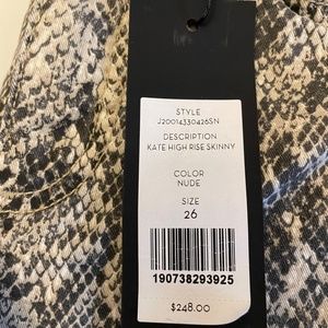 High-rise skinny jeans. Snake skin print. Nude colour. NWT