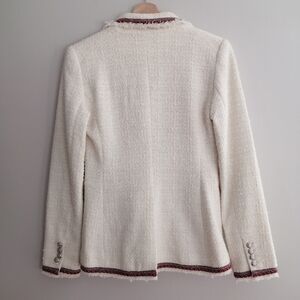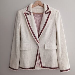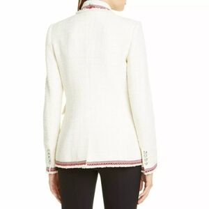 Veronica Beard Raw Edge Cutaway White Tweed Dickey Blazer with Red Trim 0