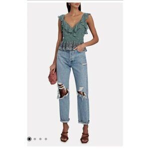 Veronica Beard Women’s Randa Silk Top Seaglass Multi Peplum Ruffle Floral Size 6