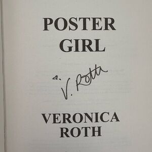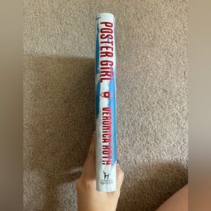 Veronica Roth's 'Poster Girl' book with a striking cover design. Features blue and red colors. Sprayed edges. Signed by author