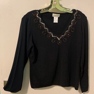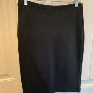 Veronique Miljkovitch skirt, EUC, black knit, gold, sz s, pull on, knee length