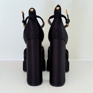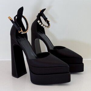 Versace Aevitas Pointy Satin Platform Pumps - Black - Size 38