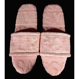 Versace Allover Logo Slippers XL 10.5 43.5 Mens Terry Cotton Pink $150