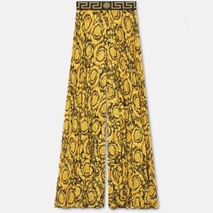 Like new worn once for photos. Perfect condition. Hanger comes with it. Size 48 but fit curvy size 6/8 US. Perfect swim cover or statement pants with bodysuit under. These semi-sheer plissè pareo pants feature the Barocco print and the signature Greca border at the waistline.