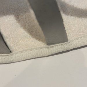 This is a pair of Versace shoes that my daughter received when she was very little. So not sure the exact name of these shoes. But they have the Medusa Versace logo on them. They are NOT a walking shoe. They are very flat and flimsy. The inner sould that touches the foot is a terrycloth feel. The bottoms are a little dirty, but because I remember when she was at that stage that she was not walking and we would hold her hands while she was stepping around. So it was just her feet touching the ground that caused the tiny bit of dirt. It most likely wipes off but I don't want to try incase it ruins the shoe.