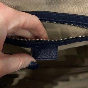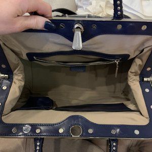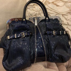 Versace Blue Striped Patent Leather Studded Frame Satchel (Rare)