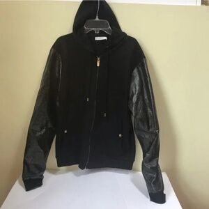 Versace Collection Hoodie Jacket Leather Cotton Sleeves Zip Up Hood Coat Logo MS