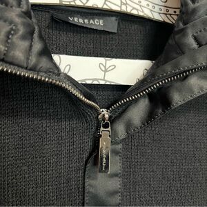 Beautiful and thick knitted sweater from Gianni Versace, Made in Italy. In over all great condition except for the flaw (come thread came loose & off) at the inner area of the left arm sleeve - please see last photo. Does not affect use and barely noticeable. No rips or stains. Heavy sweater. Says size 46 IT or size S in US.