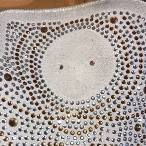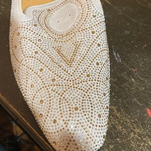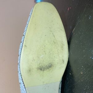 Elegant light blue loafers adorned with sparkling rhinestones. Perfect for a stylish look. Missing the circle things on top of the shoes. Size 42 which is 8.5-9.0