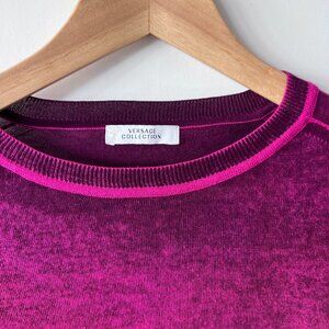 Authentic Versace long-sleeve crewneck sweater in a bold magenta knit. Made in Italy with premium materials, featuring the brand’s signature luxury craftsmanship. Perfect statement piece for both casual and elevated outfits.