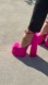 These iconic Versace heels are made in Italy from pink satin, they're set on towering 6” heels balanced by stacked platforms. The adjustable straps are adorned with a row of sparkling crystals and the house's signature 'Medusa' charm. In like new condition. Only worn once. Bought from the Versace website. Box and dust bag included