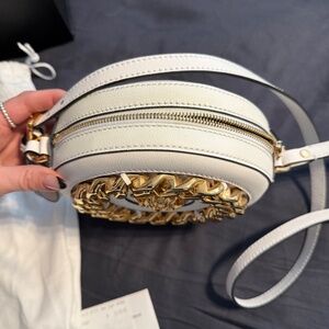 This beautiful round Crossbody bag in the Medusa collection by Versace is in pristine condition and has never been used.