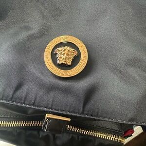 Authentic Versace nylon drawstring backpack with cards. Perfect for everyday use with zippered compartment.