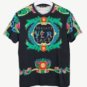 Versace Resort 2018 Black Beverly Palm Graphic Cotton T-Shirt