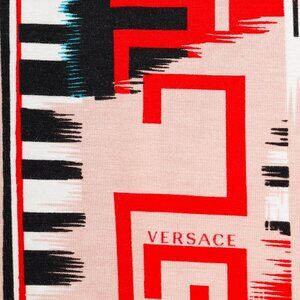 This t-shirt from Versace's 2011 Spring and Summer collection is crafted with a viscose-blend jersey printed in a multicoloured geometric print of blush, red, blue, yellow, white, and black hues. It features short sleeves, a crew neck, and a relaxed fit throughout the bodice.