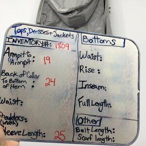 Good, pre-owned condition with no rips, holes, or stains. A few small spots of wear, see photos. Size is SP on the tag, check measurements below.