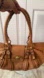 Stylish tan leather women's bag with gold accents. Perfect for any occasion.