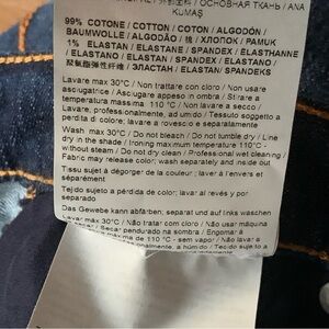 Low rise dark wash skinny jeans from the 2000s era. Low rise, zipper and button closure, five pocket design, Versace Jeans logo embellished.