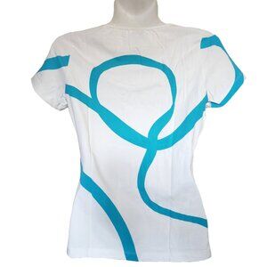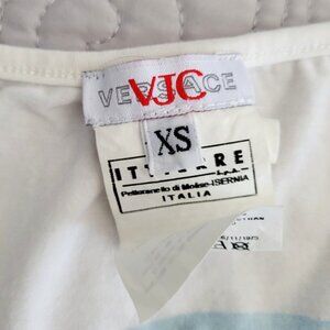 Versace White Cotton Tee with Blue & Gold Abstract Size XS
