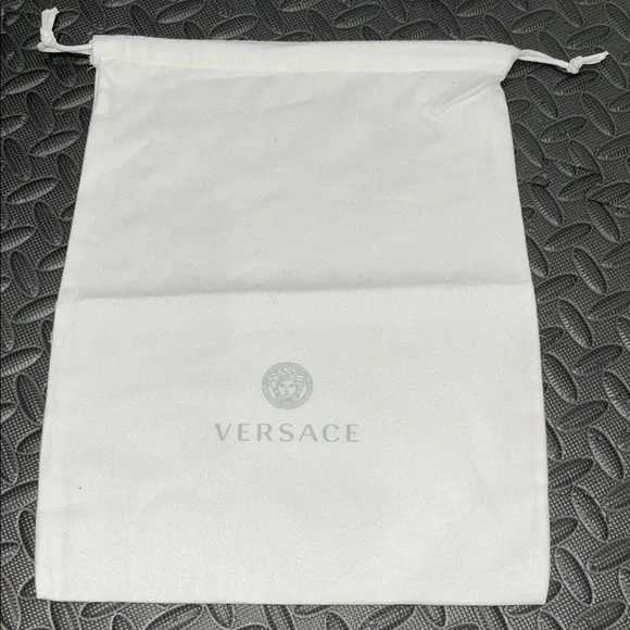 Elegant white pouch with drawstring. Ideal for luxury item storage. Approx. size: H:13.5”x W:11”