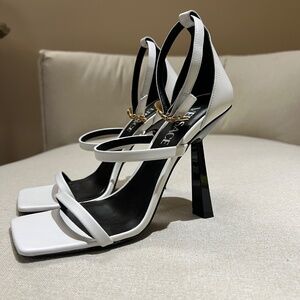 Versace White Safety Pin Heel Sandals