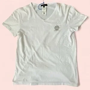 🔥Versace Medusa Embroidered V-Neck T-Shirt White🔥