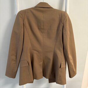 Beautiful and timeless Versace blazer featuring the signature gold logo lining and classic tailored construction. This piece has been worn and shows some stains and a couple of small rips on the inside lining, but they are not visible when worn. Exterior fabric is in good condition with no major flaws.