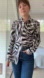 Black and white button down top with metal detail on collar. Tapered at the waist, long sleeves with button cuffs. Hidden buttons down the front. Buttons on reverse side indicate it’s a men’s, but it has a feminine waist and fits very well; would be perfect for a tall girlie. Because it is likely a men’s, I didn’t button the bottom two buttons as it would be snug on the hips. Bold pattern that would look incredible at the office or for a girls night out.