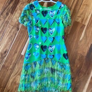 Fringe at the arm cuffs and bottom, cut-out at the neck line