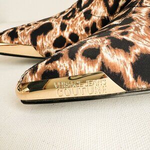 Versace jeans Couture Animal Print Sock Stretch Pointy Toe Boots 41