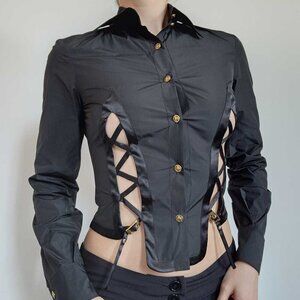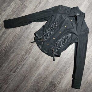 Versace jeans black lace up button up shirt with gold toned buttons ✦ 80s / 90s