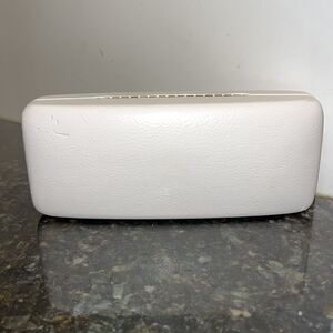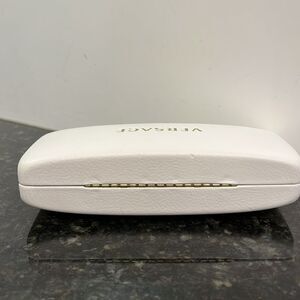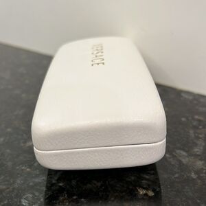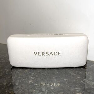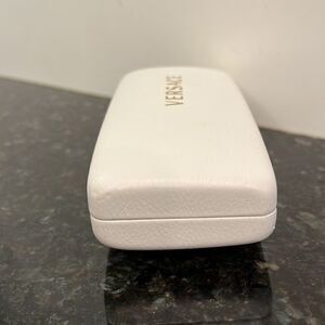 Versace. White/Gold Eye glass case. Designer Brand. Beautiful white with gold lettering Versace eye glass case. Good condition. A few minor scuffs. See photos for condition. 6.25” long on outside. 2.75 wide. 1.25” high. Good sized case.