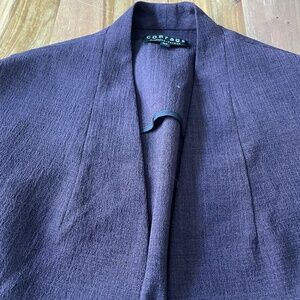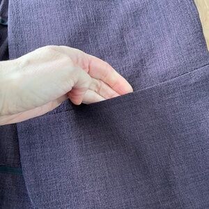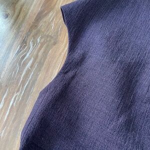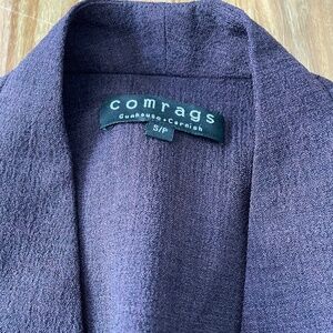 Classic Comrags vest in a beautify burgundy fabric. Functioning front pockets, longer at the shoulder and elastic back. Pictures show the impeccable workmanship with seaming front and back (and look at the workmanship inside!). This is a burgundy tinged with some black - a deeper purple-ish colour than the pictures suggest. There is a very small pull in the back which you cannot notice (last picture is an extreme close up) and does not damage the vest. No fabric tag but I have hand washed this item.