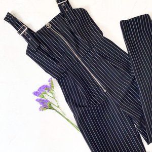 The stripes and black colour helps to give you a slim figure look. Comes with the details of buckled straps and zip closure at the front. Length hits at the ankles and could be worn over of a top or on its own if that's more of your style.