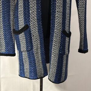 Verve Ami Black, White and Blue Striped Sweater Coat. Size S.