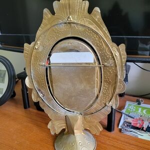 Very Unique Hand Crafted Punched Tin Gold Pictire Frame One Of A Kind