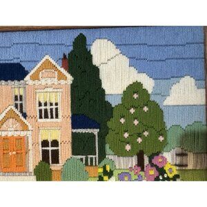 Very Vintage Embroidery 1987 Creative Circle *Spring Victorian House- Framed