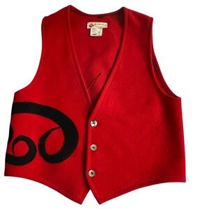 Vest by Karl Harris Design Stolo Nation Canada Red & Black Wool 3 Button Size M