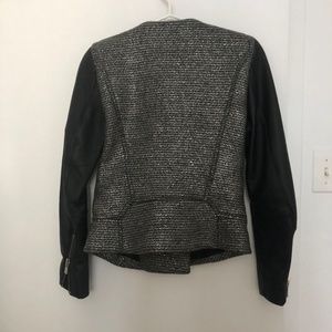 Veste Maje taille 36 Noire - argentée Manches en cuir avec femeture éclaire sur manches Excellent état, comme neuve