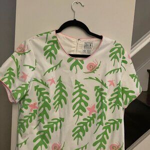 VG dresses have no stretch. All rare prints. Big snails and leaves, A-line shape. Marked size 16.