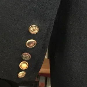 Sa particularité : les boutons sont différents, mais tous en métal.