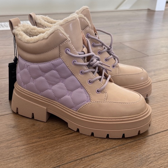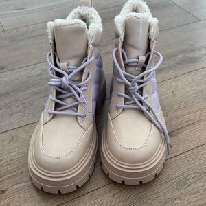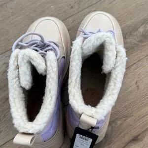 Step out in style with these chic women's boots. Featuring a unique blend of tan and purple, these boots offer both comfort and fashion. Perfect for any casual outing.