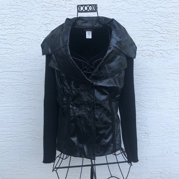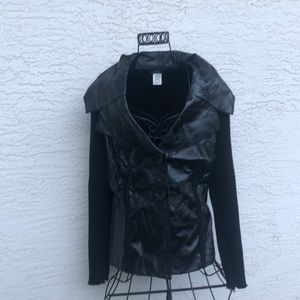 Hi. It's a bit hard to see. Is that faux leather with knitted sleeves? Is it light weight? Thank you.